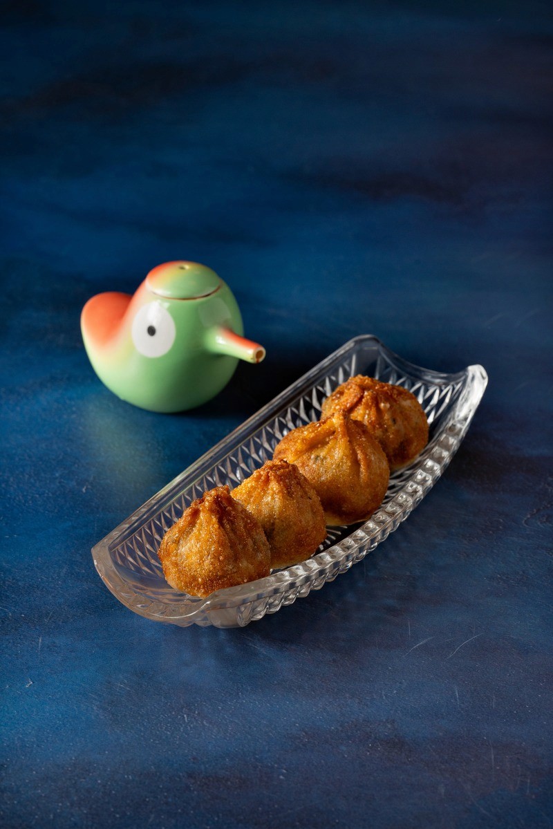 raviolis frits, farce au kimchi et au porc