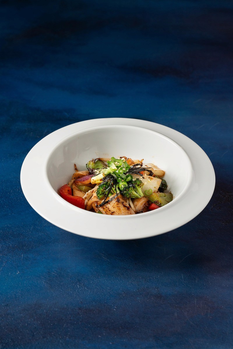 squid and vetetables fried with olive oil