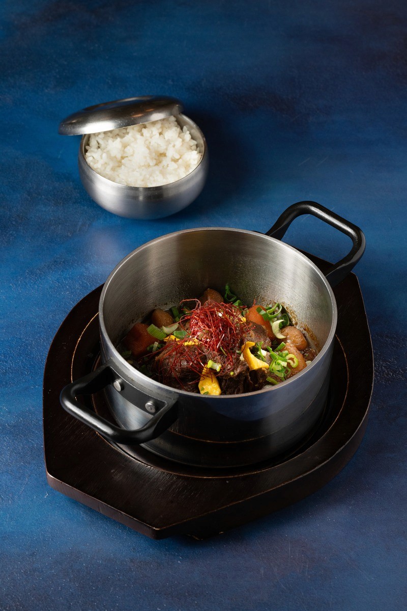 ragoût de boeuf aux marrons et jujube, mijoté au jus de poire et à la sauce de soja