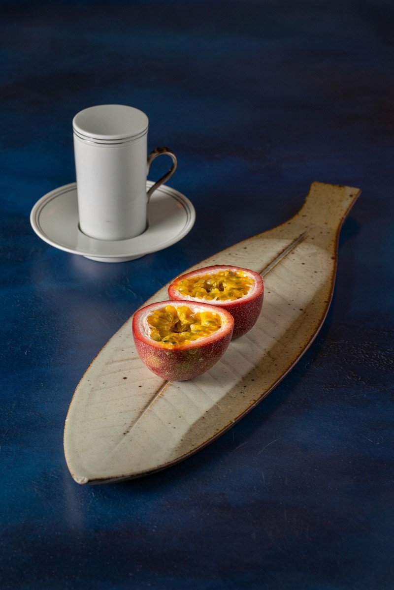 fruit de la passion accompagné d'une infusion au ginseng rouge