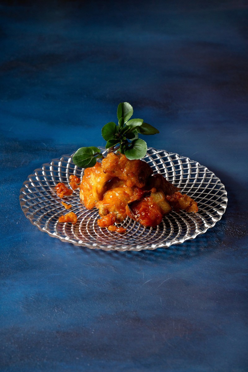 fried eggplant with mild spicy sauce