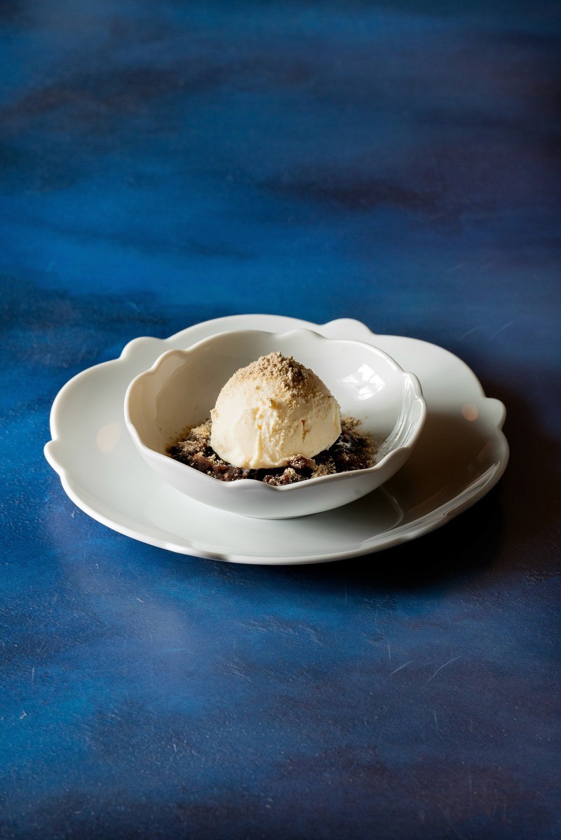 red beans with vanilla ice cream and 'five grain' powder